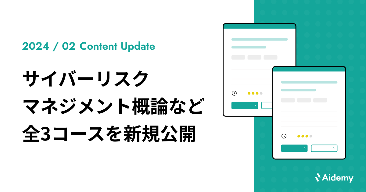 2024年2月は、企業が抱える課題解決の手法として注目されているブランディングの基礎を学ぶ「ビジネス変革を起こすためのブランディング入門」、情報セキュリティ担当に向けた「事業継続のためのサイバーリスクマネジメント概論」など、全3コースをリリースいたしました。