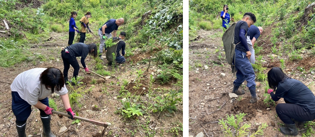 座学で学んだことを基に実際に植樹をしている現場へ行き、平林林業の指導のもと今回は杉の苗木を30本植樹しました。