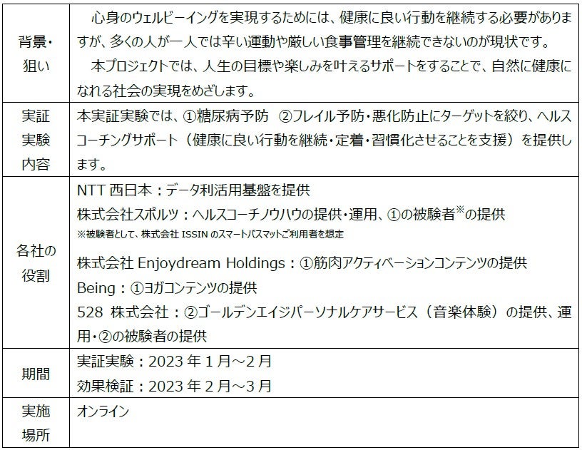 西日本電信電話株式会社(以下、NTT西日本)では、2022年8月より未来共創プログラム『Future-Build For Well-being society(フューチャービルドフォーウェルビーイングソサイエティ)』 (以下、本プログラム※1)を開始し、オープンイノベーションによる社会課題解決や未来社会の創造に取り組んでいます。101件におよぶ応募の中から、9月に4領域6テーマの採択企業を決定し、11月に第一弾として先行3テーマの実証実験開始を発表しておりましたが※2、この度、第二弾として新たに2テーマの実証実験も開始いたします。
