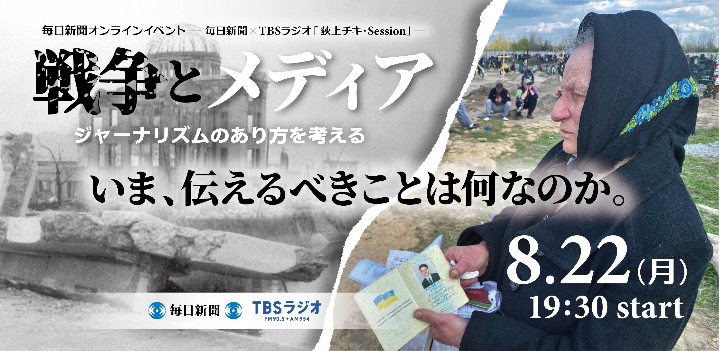 戦争とメディア~ジャーナリズムのあり方を考える~毎日新聞×TBSラジオ「荻上チキ・Session」8月22日(月)開催