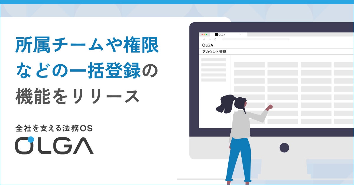 GVA TECH株式会社(本社:東京都渋谷区、代表取締役:山本 俊、以下GVA TECH)は、全社を支える法務OS「OLGA」でアカウント管理の機能をアップデートし、チームや所属部署の情報を一括登録・一括更新することが可能になったことをお知らせいたします。