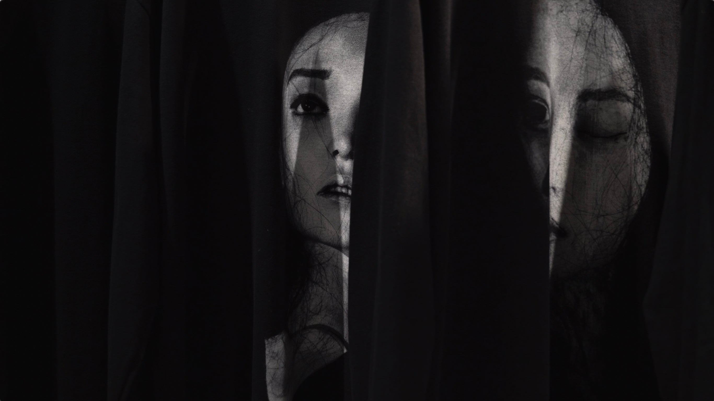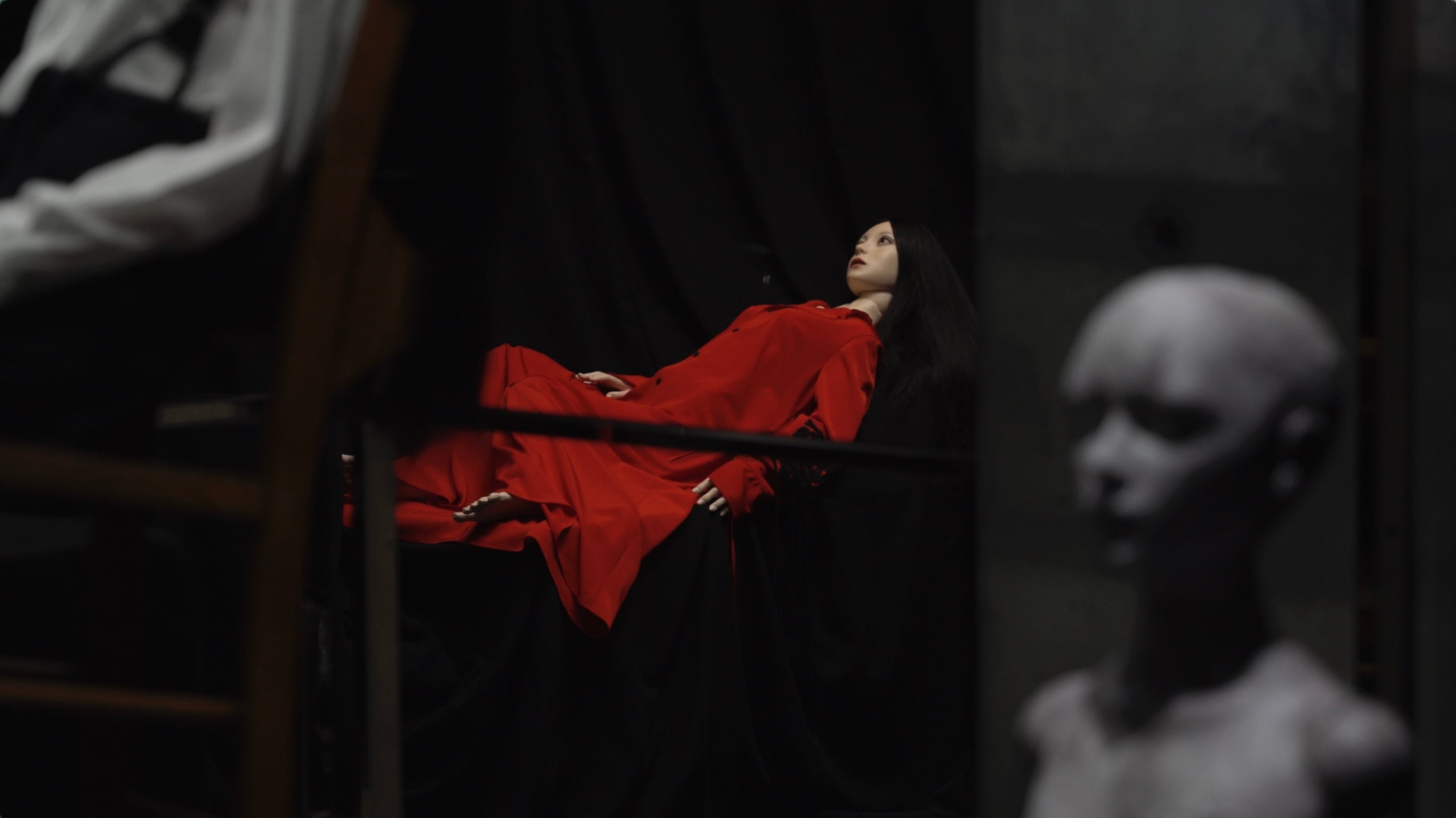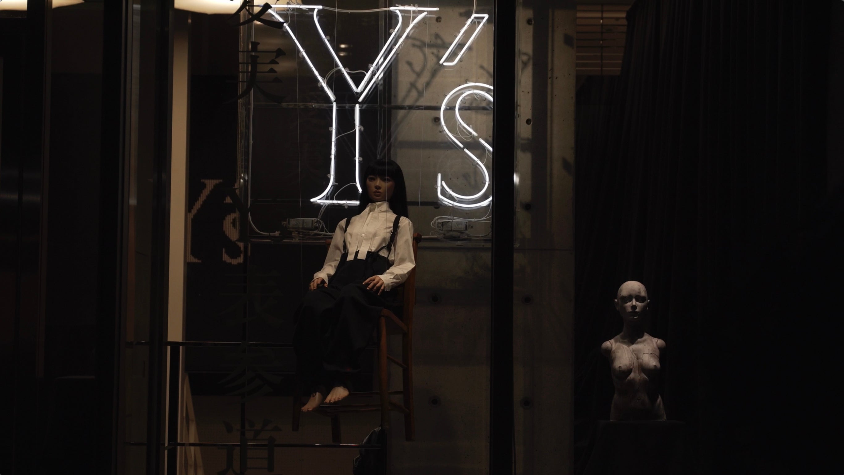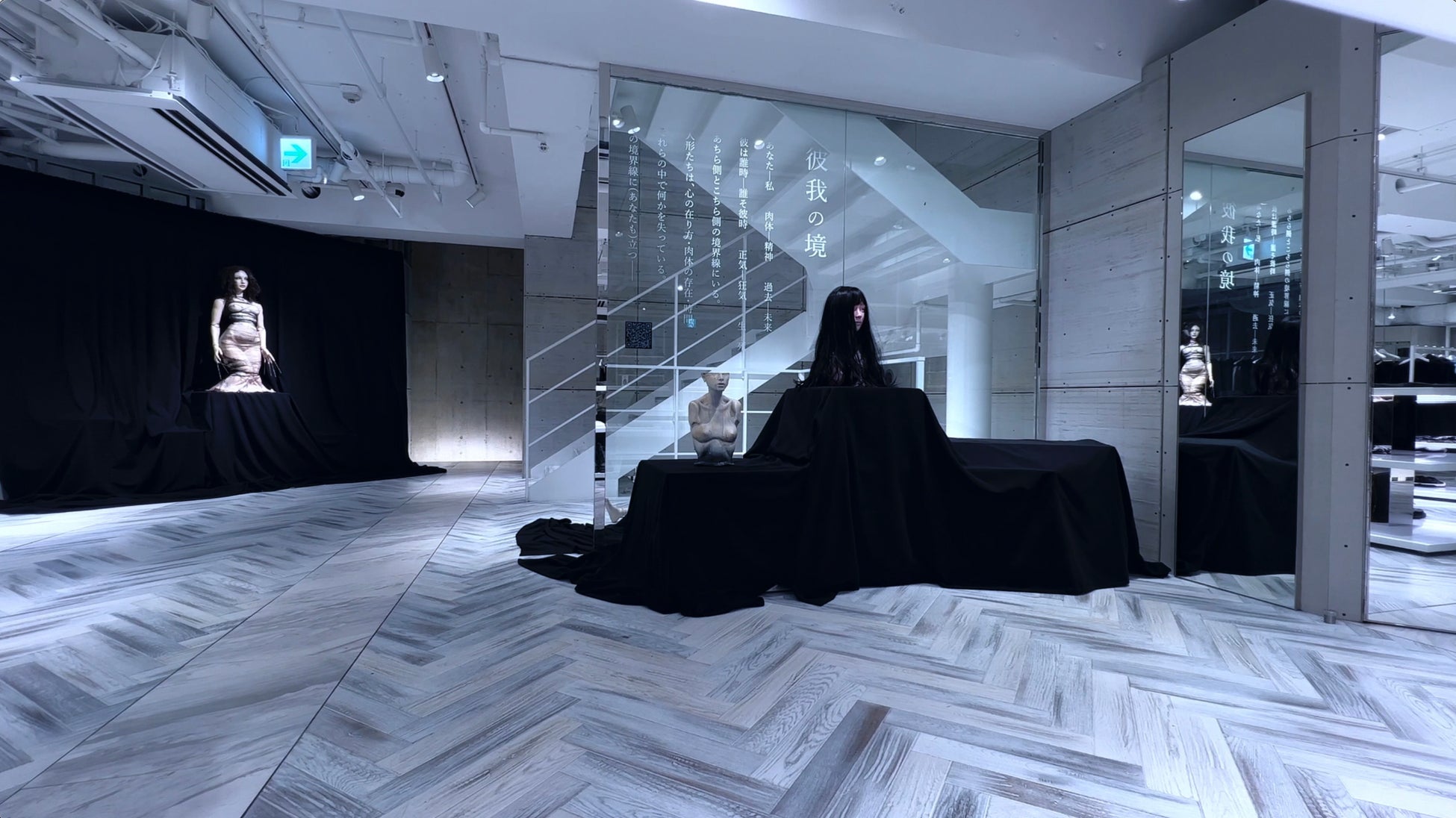 写真に映された人形がY's表参道に表出し、幻影のように揺蕩う服と、実際に空間に佇み何かを見つめる彼女たちが交差する空間。