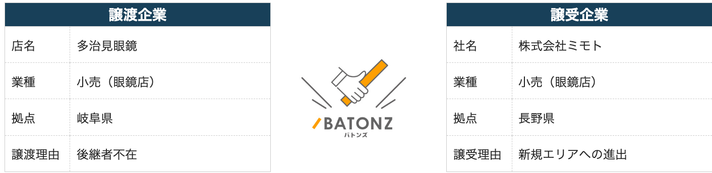 【バトンズ成約事例】長野県で眼鏡店を複数運営する「ミモト」が岐阜県の眼鏡店「多治見眼鏡」をM&A!