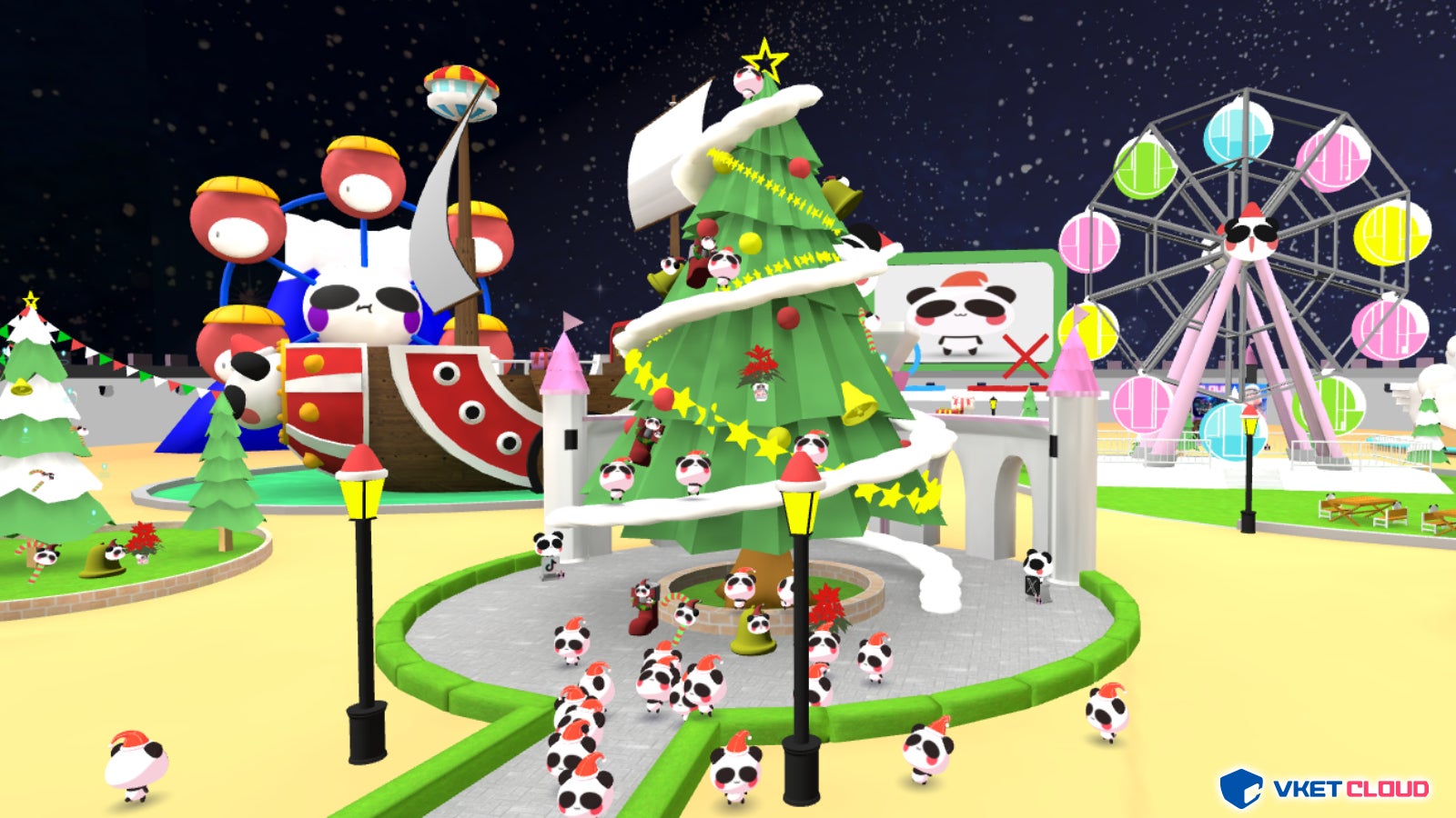 フォロワー100万人を超える人気TikTokキャラ「あおぱんだ」が、HIKKYのWebメタバース開発エンジン「Vket Cloud」で制作したメタバース空間でクリスマスパーティを開催!