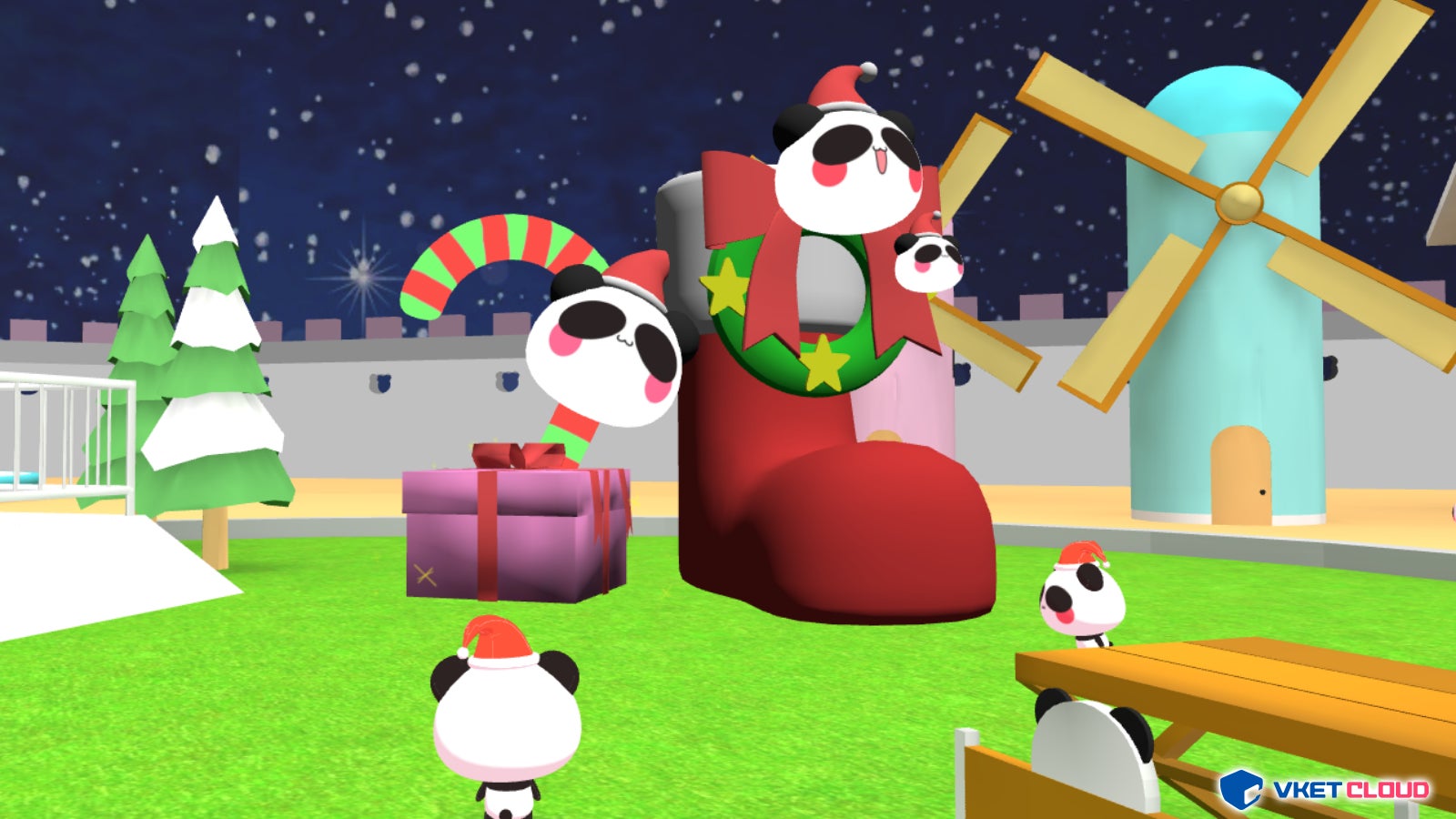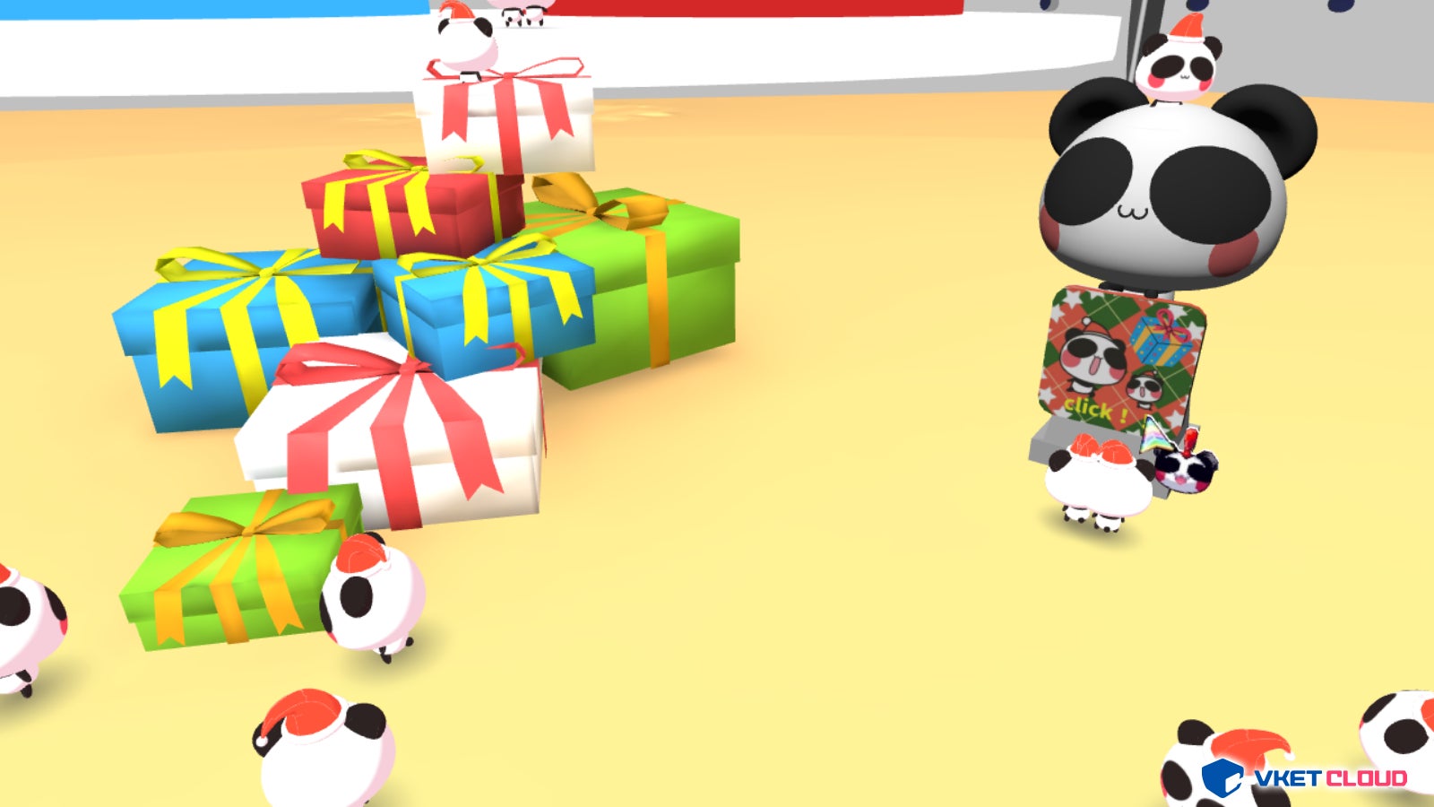 ワールド内の様々な場所に隠されたプレゼントを集めるゲームを実施。全てのプレゼントを集めると新たなオブジェクトが出現。オブジェクトをクリックすることでイベント限定のあおぱんだアバターを取得できる仕掛けとなっており、参加者はプレゼント探しを楽しみました。
