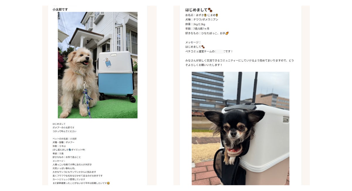 本コミュニティを通じて、大切なペットとの暮らしやお出かけをもっと楽しむヒントやアイデアを見つけることで、“いつも一緒”の実現をサポートします。