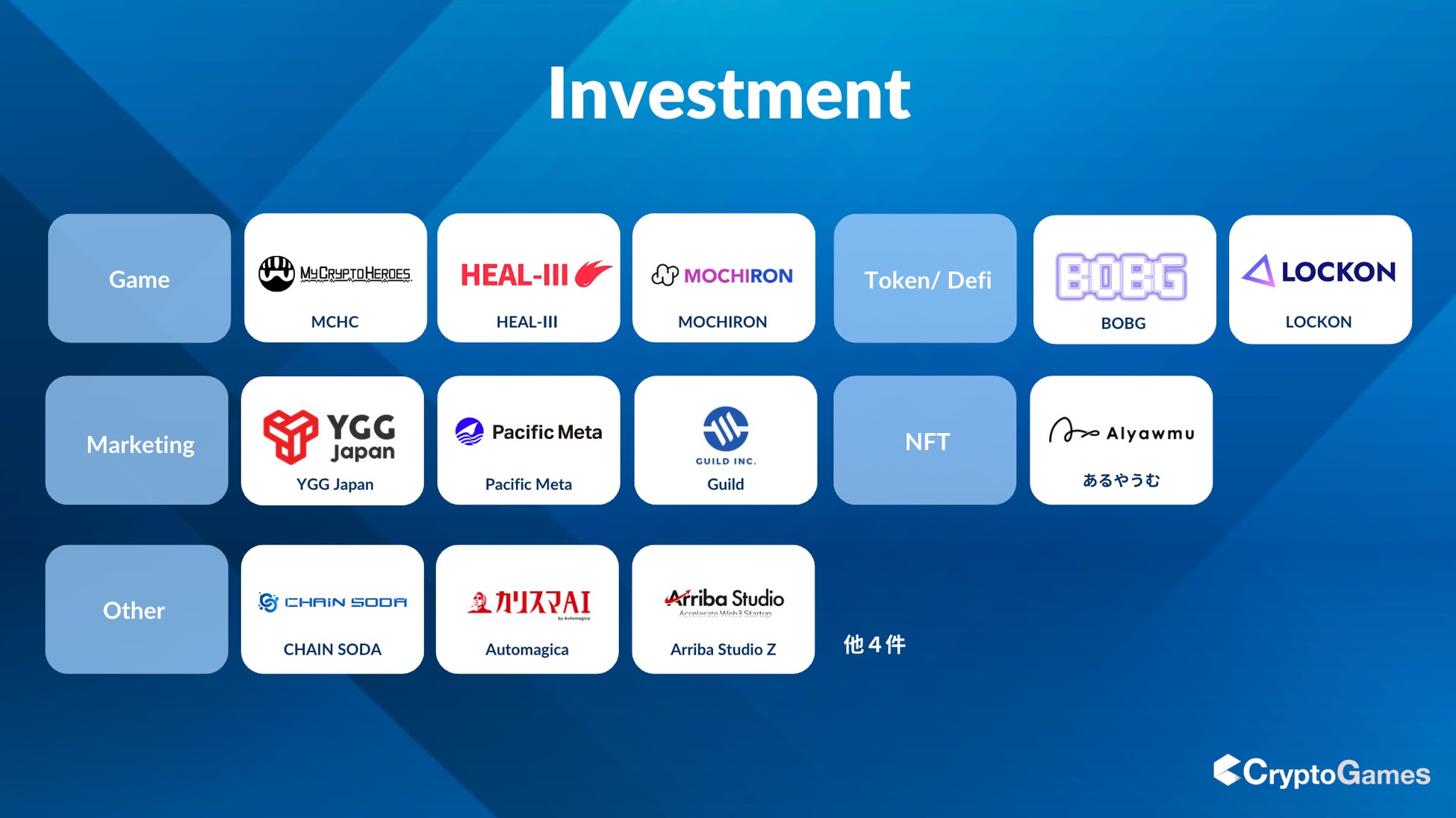 CryptoGames株式会社では、2021年頃よりWeb3業界の発展及びエコシステムの構築を目的とし、様々なWeb3プロジェクトへの出資、開発等の支援を行ってまいりました。