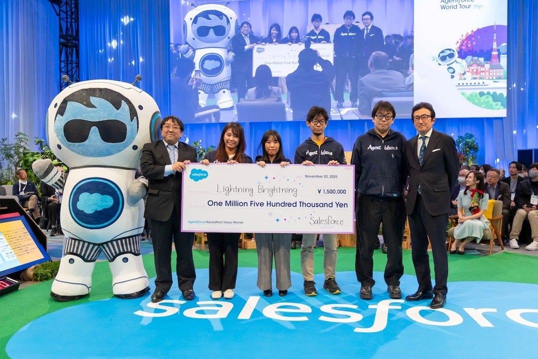 Salesforceは、開発者・パートナー・顧客を含むエコシステム全体のスキル向上と連携強化を目的に、開発者や管理者が実際に手を動かして学び、業務課題の解決に直結するエージェントを生み出す場としてハッカソンを開催しています。Agentforceの普及と実践的な活用拡大を目指す取り組みの一環として、このたび国内で初めて「Agentforce World Tour Tokyo 2025 ハッカソン」を開催しました。賞金総額300万円をかけた競技形式で、Salesforceプラットフォーム上における実用的なAIエージェントの開発に挑戦する本イベントには、最終参加登録者数151名、提出作品数37もの応募がありました。最終選考会では全国からエンジニア、非エンジニア合わせて20チームが参加しました。教育支援、食品ロス削減など、さまざまな社会・ビジネス課題の解決を目指したAIエージェントがエントリーし、優勝はLightning Brightning(化粧品販売への総合ソリューション)、第2位は電通デジタル(マーケティング業務向け Slack & マルチエージェント)、第3位はキットアライブ(地方移住促進ソリューション)となりました。またTEAM HEART LINK(ロボット & 介護)が特別賞を受賞いたしました。