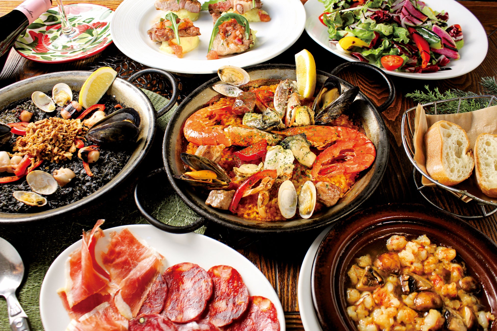本場仕込みのスペイン料理・タパス・パエリャなど魚介料理、牡蠣やボリュームたっぷりのグリル料理。特選素材を使用したスペイン料理をテーブルにお届けします。