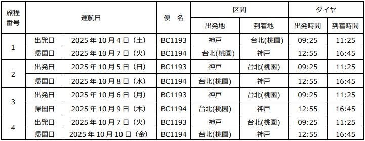 関西エアポート神戸株式会社は、スカイマークが2025年10月4日(土)から10月10日(金)の期間限定で、国際チャーター便を運航することをお知らせします。