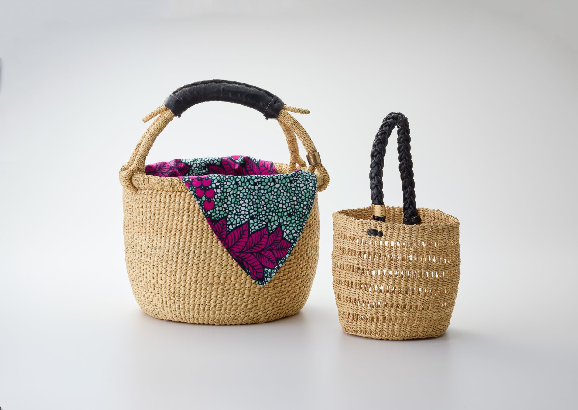 西アフリカの国・ブルキナファソの伝統的な草木染めやテキスタイルで彩られたかごバッグ