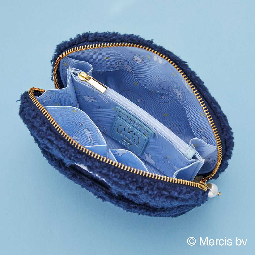 二種類のミッフィーの可愛らしいイラストを使用。ミッフィーのおふとんのように見立てたデザインがポーチのフロントポケットに。
