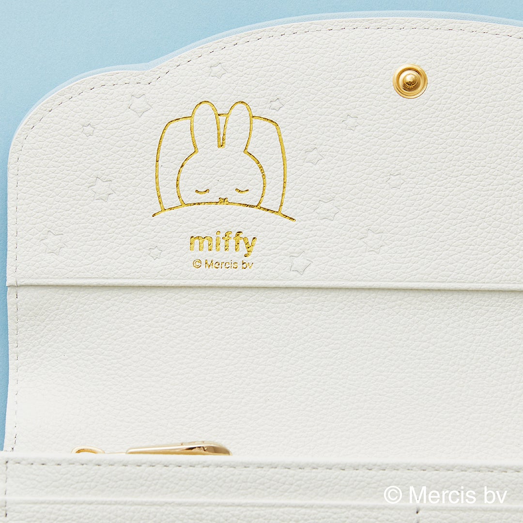 フラップは雲の形を連想させる柔らかいカッティングを施し、フラップを開けると眠っているミッフィーの型押しを施した愛らしいデザイン。