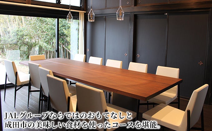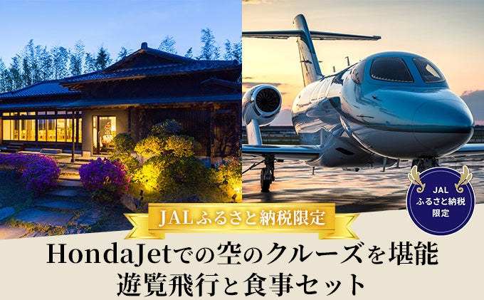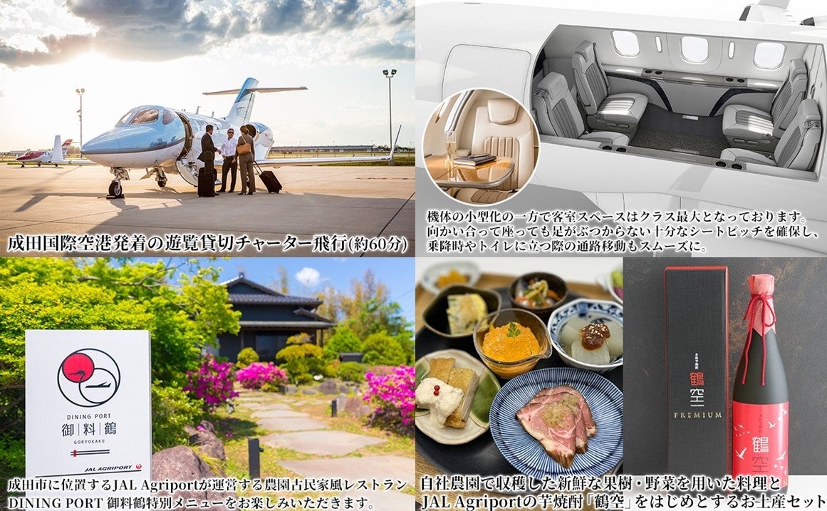 今回登場する返礼品は、成田国際空港が位置する成田市の魅力を存分に味わえるものとなります。ビジネスジェットチャーター手配業務を行うJALビジネスアビエーション社が手配をするHondaJetでの空のクルーズの後に、成田市にあるJAL Agriport社が運営する農園古民家風レストラン「DINING PORT 御料鶴」で特別メニューを味わっていただけます。JALグループならではのおもてなしと成田市の美味しい食材を使ったお食事、成田国際空港発着のプライベートジェットでの空のクルーズを1日で満喫できる、特別な日のための体験型返礼品です。