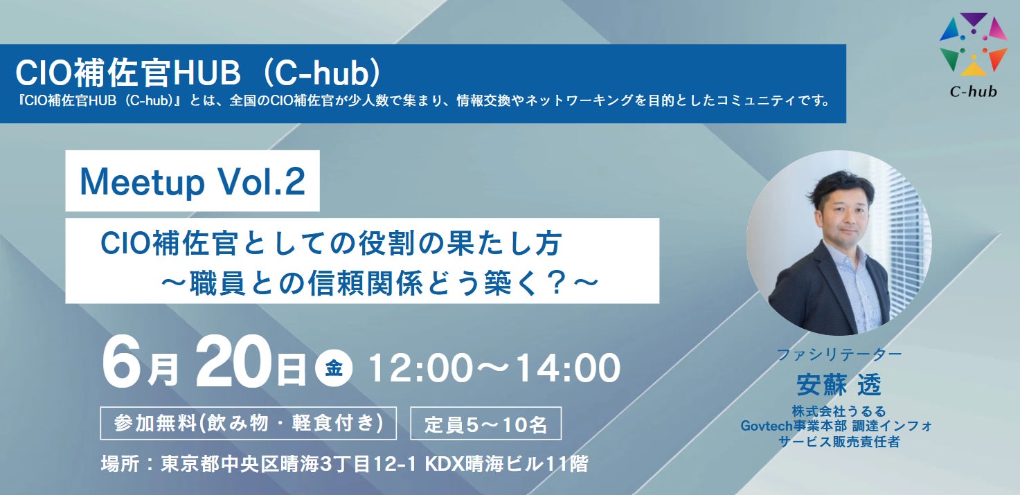自治体DXのキーパーソン「CIO補佐官」コミュニティ『CIO補佐官HUB』 6月20日(金)に「C-hub Meetup Vol.2」を開催!