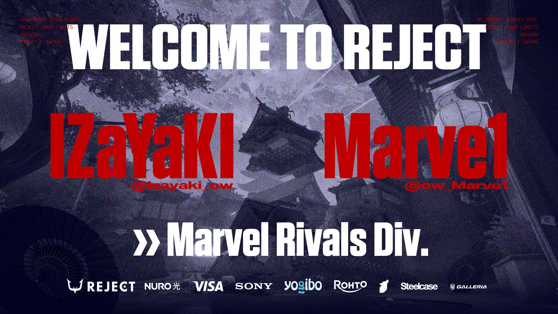 株式会社REJECT(本社:東京都港区、代表取締役:甲山翔也)が運営するプロeスポーツチーム「REJECT」は、このたびMarvel Rivals部門に「IZaYaKI」「Marve1」の2名が新たに加入したことをお知らせいたします。REJECTは『Marvel Rivals Ignite 2025 Stage 2 - Asia』に向け、新体制で大会に臨みます。
