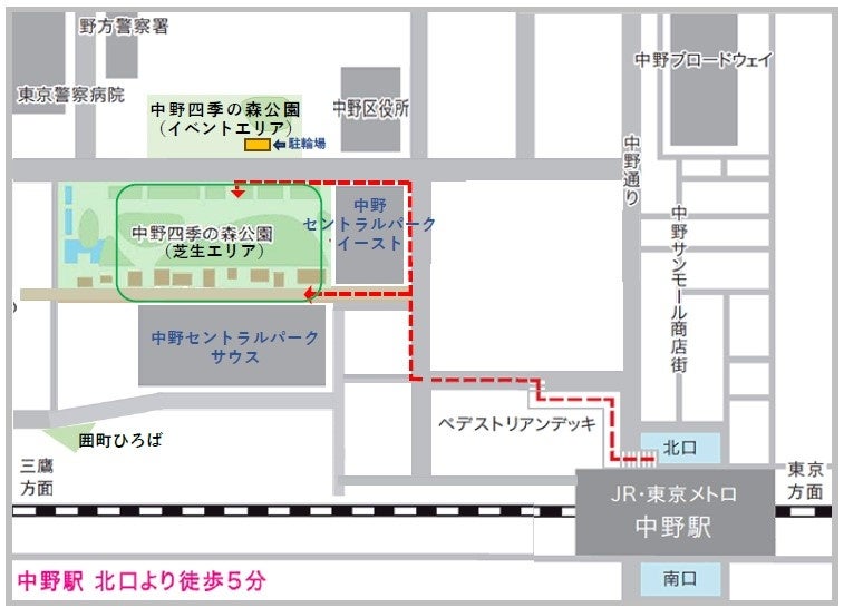 中野セントラルパークアベニュー・中野四季の森公園 〒164-0001 東京都中野区中野4-10-2・4-13 (JR中央線・東京メトロ東西線「中野」駅徒歩5分) |
