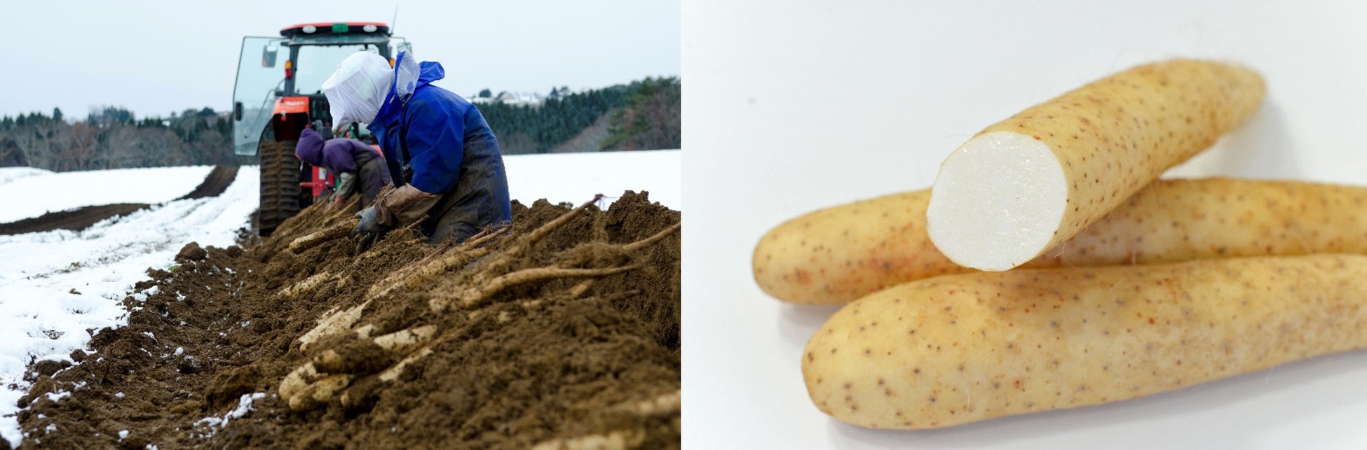 県内で広く生産されている品種は、青森で誕生した首が短く肉付きのいい「ガンクミジカ」という系統。「ガンク」とは首のことで、「首が短い」という意味を持ち、色白で粘りが強く、柔らかい肉質とアクが少ないのが特徴です。 品質のいい長イモとして全国の市場から高い評価を得ているほか、国内だけではなくアメリカや台湾などにも輸出されています。