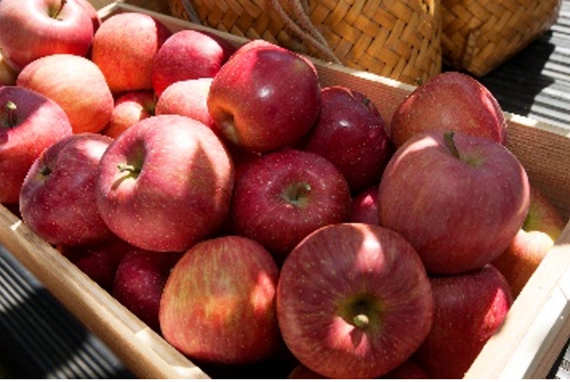 青森県産リンゴは全国生産量の半数以上を占め、ほぼ1年を通して、誰もが美味しいリンゴを手に入れられるほどの流通量を誇ります。また、最近ではリンゴの持つ機能性が報告され医学的効能も明らかになりました。リンゴの表面がベタベタすることがありますが、これはワックス処理されている訳ではなく、“油あがり”という現象によるものです。その主成分はリンゴが成熟するにつれて増えるリノール酸とオレイン酸であり、栄養価の高いものです。「ジョナゴールド」や「つがる」によく見られる現象で、よく熟した食べ頃のサインです。