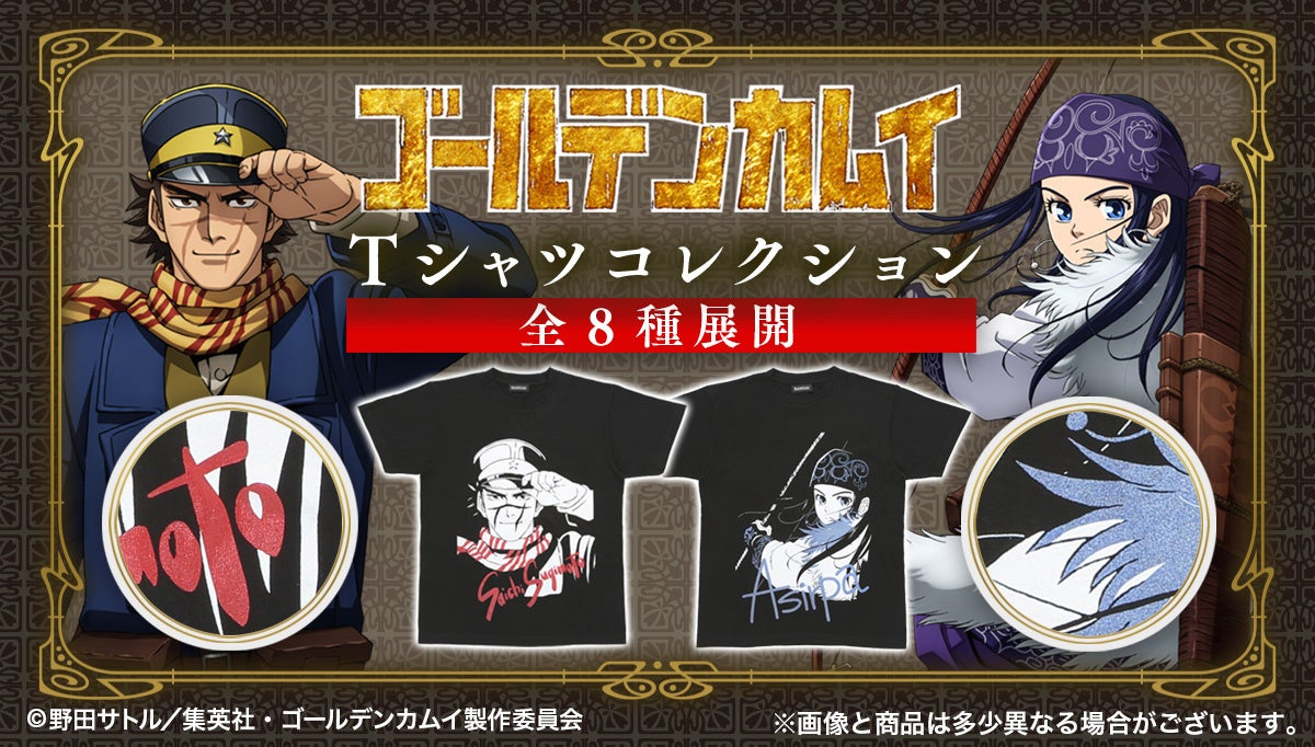 人気TVアニメ『ゴールデンカムイ』より、各キャラのイメージカラーラメをあしらった豪華仕様のTシャツがご予約開始!
