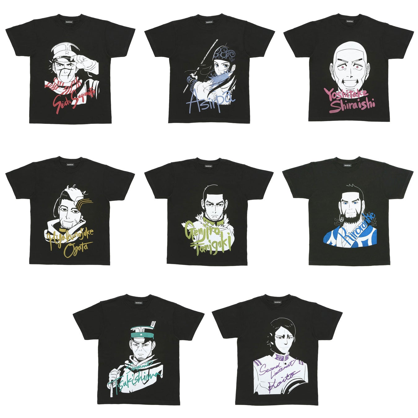 株式会社バンダイ ファッションブランド事業部では、では、人気TVアニメ『ゴールデンカムイ』のキャラクターをスタイリッシュにデザインした「ゴールデンカムイ Tシャツコレクション(全8種)(各4,400円 税込/送料・手数料別途)」の予約受付を、バンダイのキャラクターファッションサイト「バンコレ!」(https://bandai-fashion.jp/ )にて、2023年2月2日(木)12時に開始いたします。