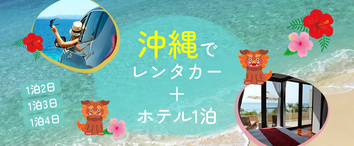 【沖縄レンタカー3日間&ホテル1泊付】【沖縄レンタカー4日間&ホテル1泊付】プランもあります。ホテルは1泊目での設定となります。※それ以外の宿泊日をご希望の方は事前にお申し付けください。