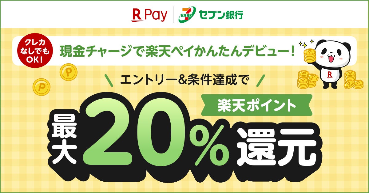 「楽天ペイ」、「セブン銀行ATMチャージ&楽天ペイアプリのお支払いで最大20%還元キャンペーン」を開催