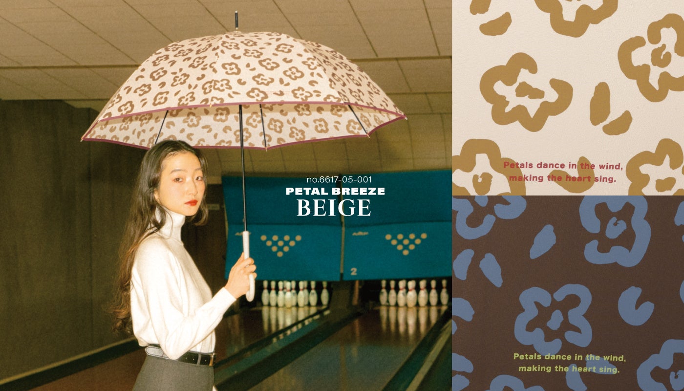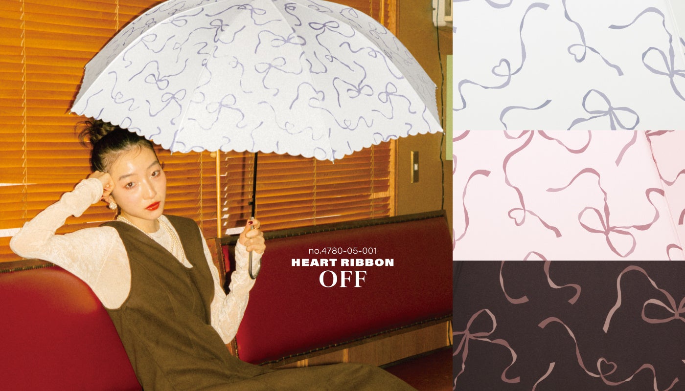 2025年秋冬コレクションを彩るのは、水彩フラワー/ハートリボン/ペタルブリーズ/プレイドフラワー(長傘・折りたたみ傘)の4柄のテキスタイルデザイン雨傘。お花やリボンのモチーフを落ち着いたトーンと繊細なタッチで表現しました。
