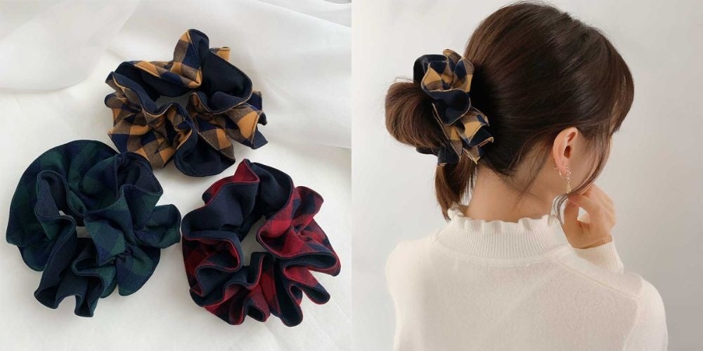 トレンドライクなブロックチェックがとても可愛いこちらのシュシュは、アップスタイルのアクセントにも、おうち時間にも使えます♪
