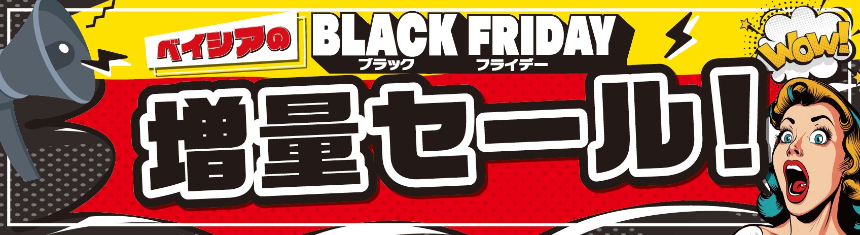株式会社ベイシア(本社:群馬県前橋市、代表取締役社長:相木孝仁)は、11月29日(金)の「ブラックフライデー」に合わせて、ベイシア各店において食品の増量セールを11月27日(水)~12月3日(火)で開催いたします。依然として円安や物価高騰が続く中で、お客様の節約志向やお得な商品に対する期待感がより一層高まっています。セール期間中は、惣菜や精肉、日配品などをはじめとした対象商品の約30品について、内容量を増量してお買い得価格にて販売いたします。「ブラックフライデー」セールにてコスパ抜群の商品をラインナップし、各家庭の食卓を盛り上げてまいります。