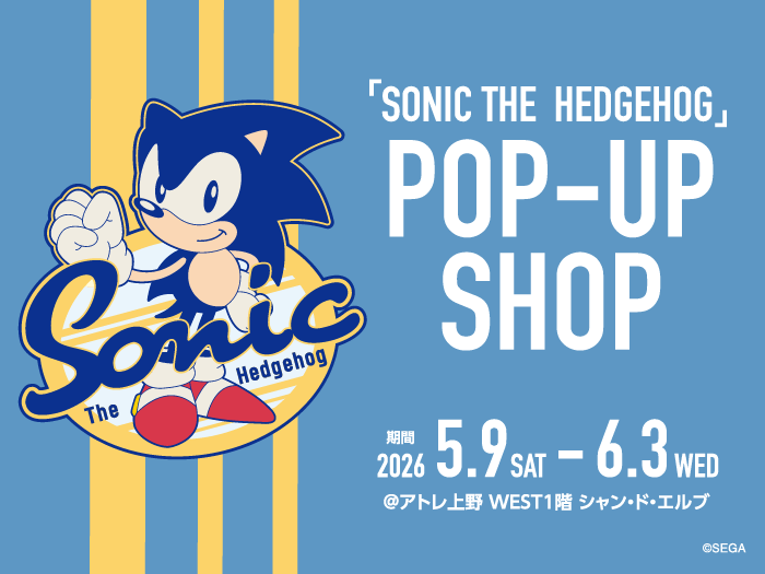 株式会社アトレ(本社:東京都渋谷区、代表取締役社長:高橋 弘行※)が運営する直営ショップ「シャン・ド・エルブ アトレ上野店」(所在地:東京都台東区)は、世界的人気を誇るセガのキャラクター「ソニック・ザ・ヘッジホッグ」のPOP-UP SHOPを2026年5月9日(土)から6月3日(水)まで期間限定で開催します。期間中は限定ノベルティプレゼントの企画も実施します。