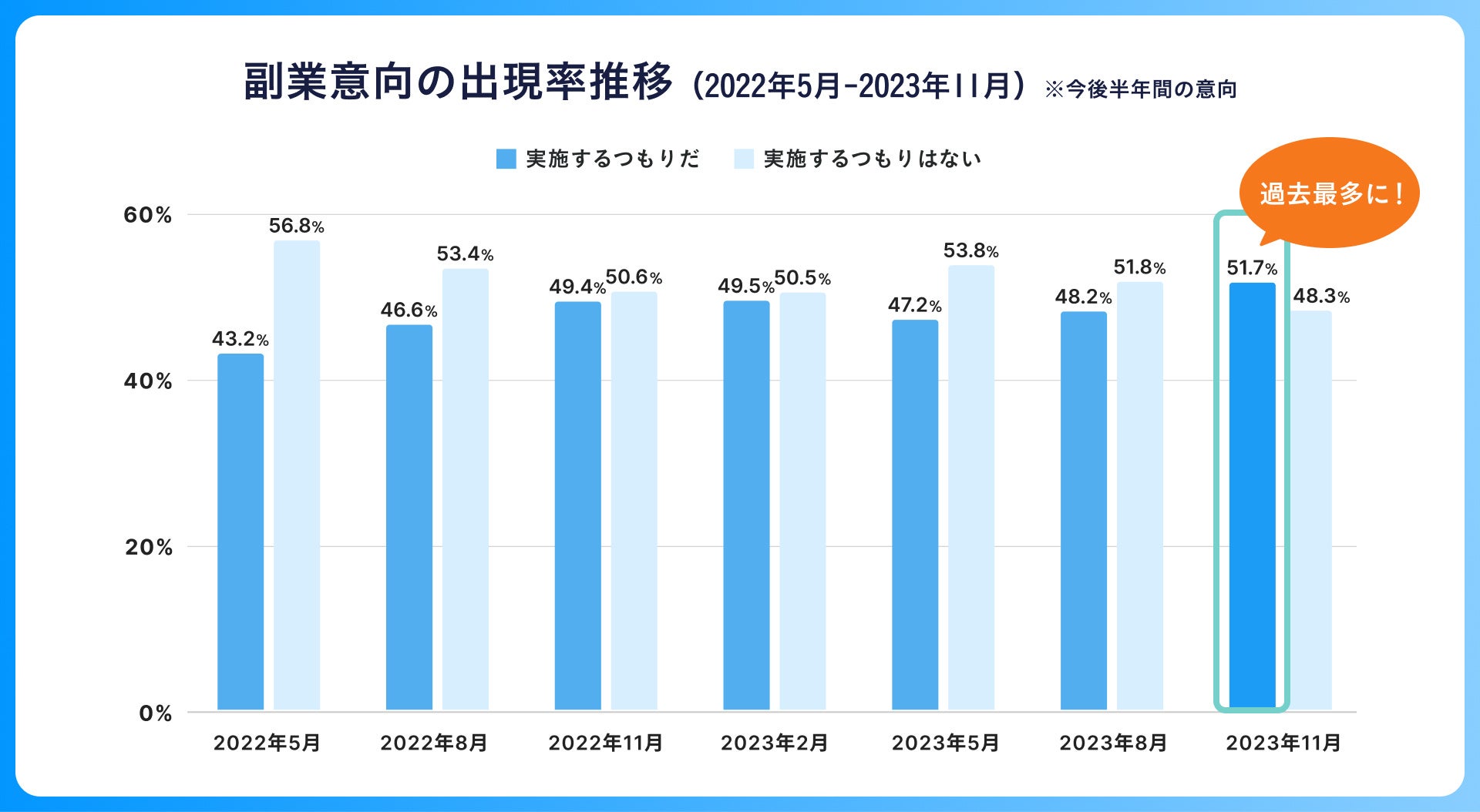 ✓今後の副業意向は、2022年5月の調査開始から過去最多