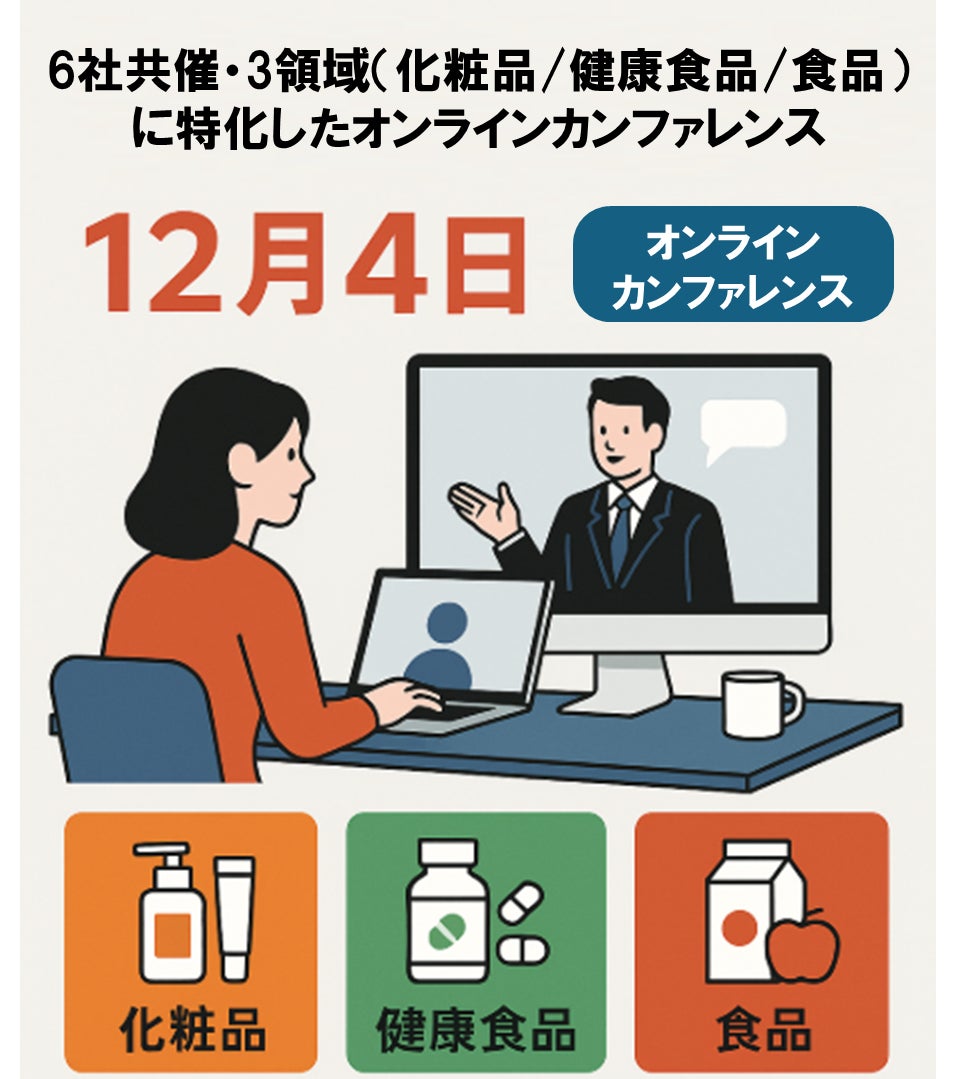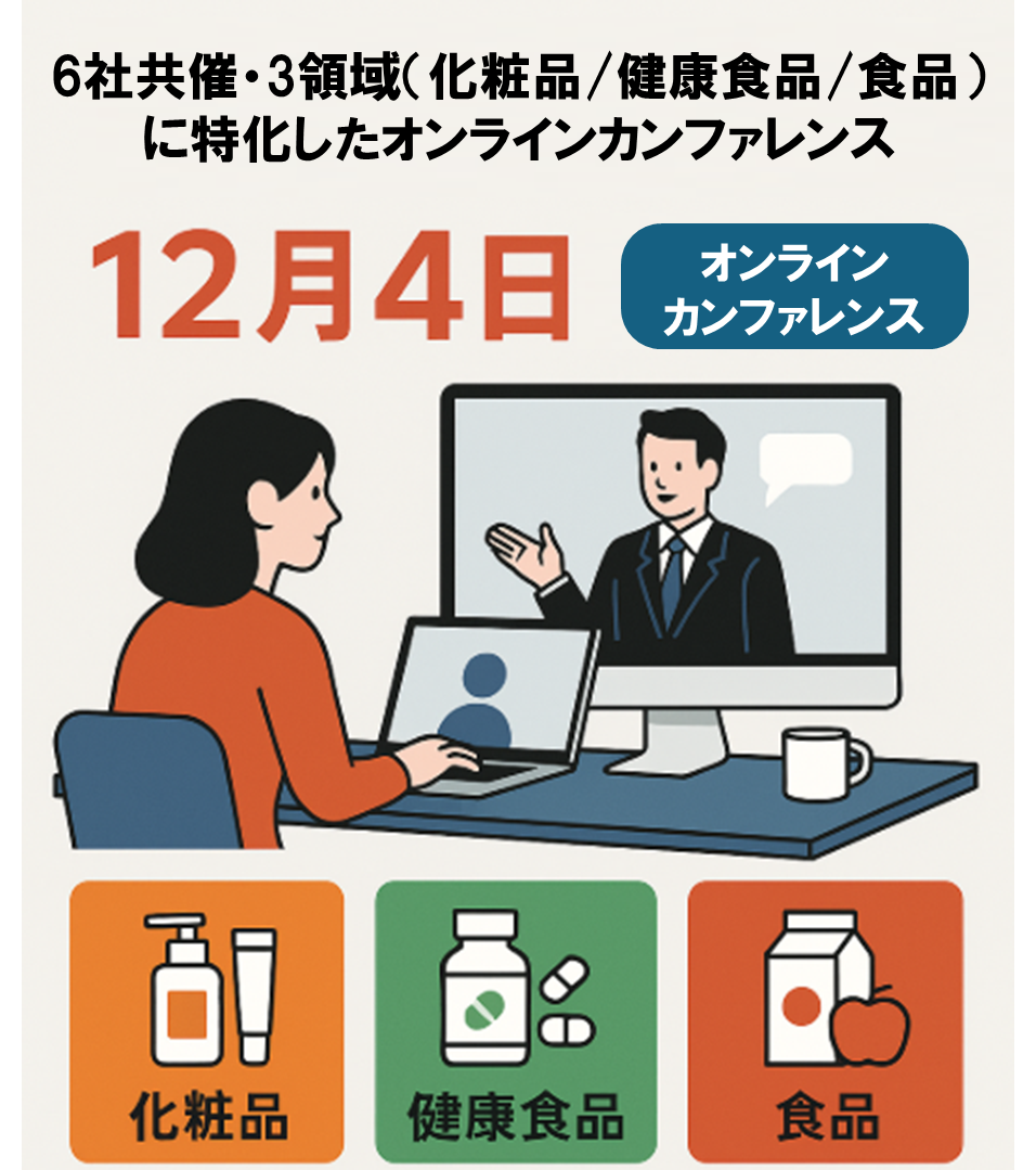 売れるネット広告社グループ株式会社(本社:福岡県福岡市、代表取締役社長CEO:加藤公一レオ、東証グロース市場:証券コード9235、以下 売れるネット広告社グループ)の連結子会社である売れるネット広告社株式会社は、2025年12月4日(木)に、化粧品・健康食品・食品の3領域に特化したオンラインカンファレンスを6社共催で開催することをお知らせいたします。