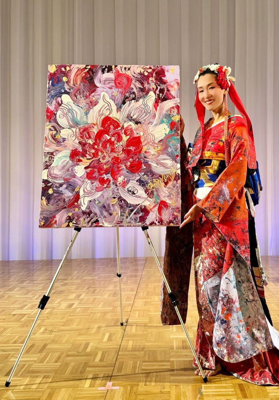 現代アーティスト。音・舞・衣・香・食などさまざまな表現を巻き込み、五感を満たす独自のセレモニーアートパフォーマー「踊絵師」としての活動が舞台芸術として評価され、中国や欧米、カザフスタン、インドなど世界各地に招聘される。2020年「女神開花」「聖なるエロス解放」をテーマとした作品シリーズをスタート。死生観に於ける命の源としての“性"に向き合い、自らを愛し直すことの重要性を作品に込めている。NISSAN、Canon、ALFA ROMEO等企業コラボレーション多数。開催個展に、岡谷美術考古館(2023)、ニューヨークNIPPON GALLERY(2023)等。