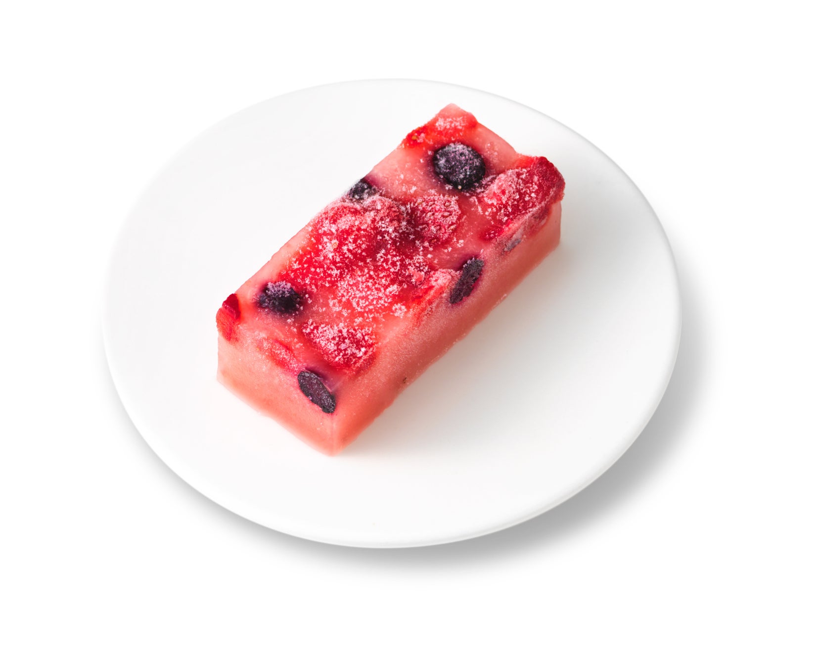 いちご風味の葛アイスに、いちごとブルーベリーをトッピングしました。甘めの葛アイスと酸味のあるフルーツのコントラストをお楽しみください。