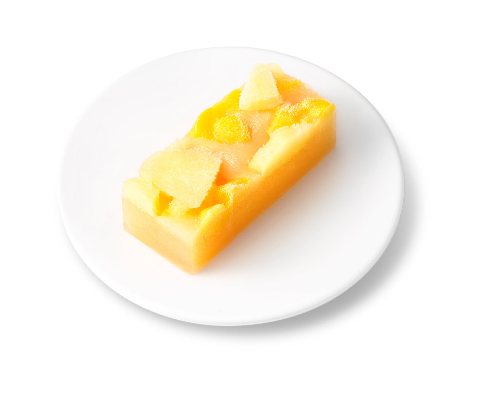 マンゴー風味の葛アイスに、パイナップルとマンゴーをトッピングしました。見た目も爽やかな、夏らしいスイーツです。