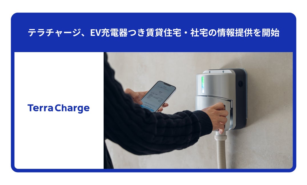 電気自動車(EV)向け充電サービス「Terra Charge(テラチャージ)」を展開するTerra Charge 株式会社(本社:東京都港区、代表取締役社長:徳重徹、以下「当社」)は、EV充電器付き賃貸物件・社宅を探すEVドライバー様やEV化を進める企業様からのリクエストに対し、弊社のEV充電器設置済み物件の情報を提供するサービスを開始いたします。