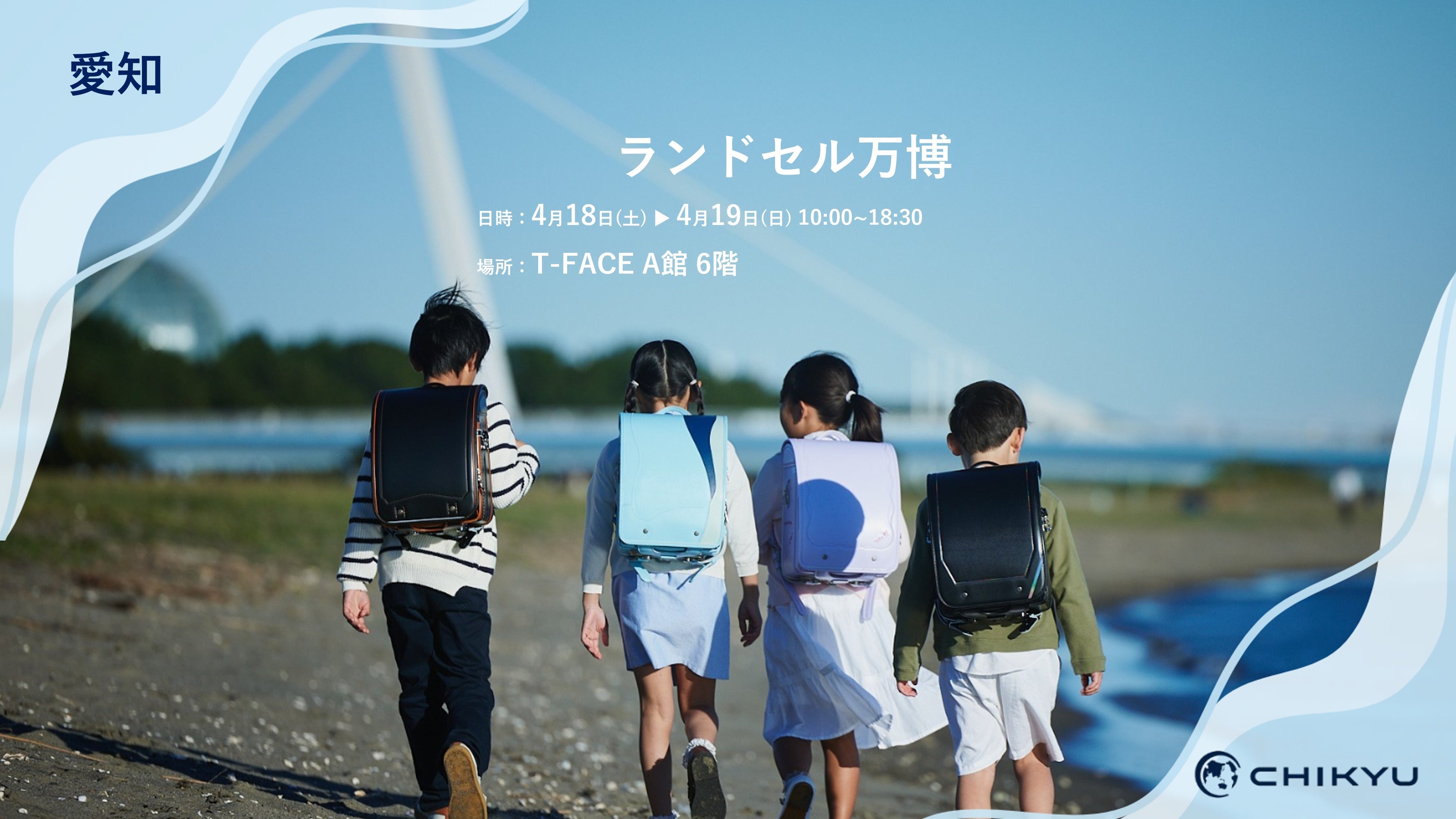 ランドセルの企画・販売を行うCHIKYU株式会社(東京都港区、代表取締役:辻谷安央)は、愛知県豊田市・山田屋での「ランドセル万博」に参加いたします。