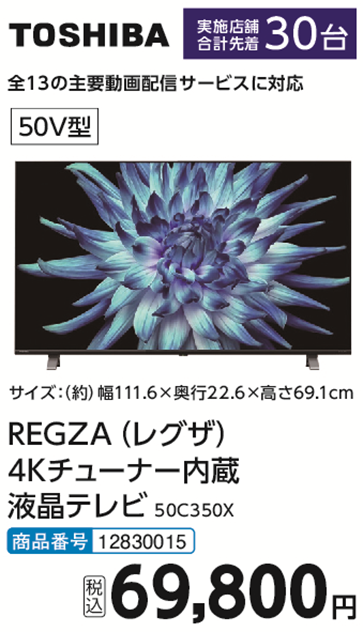 商品名:REGZA(レグザ)4Kチューナー内蔵液晶テレビ50V型