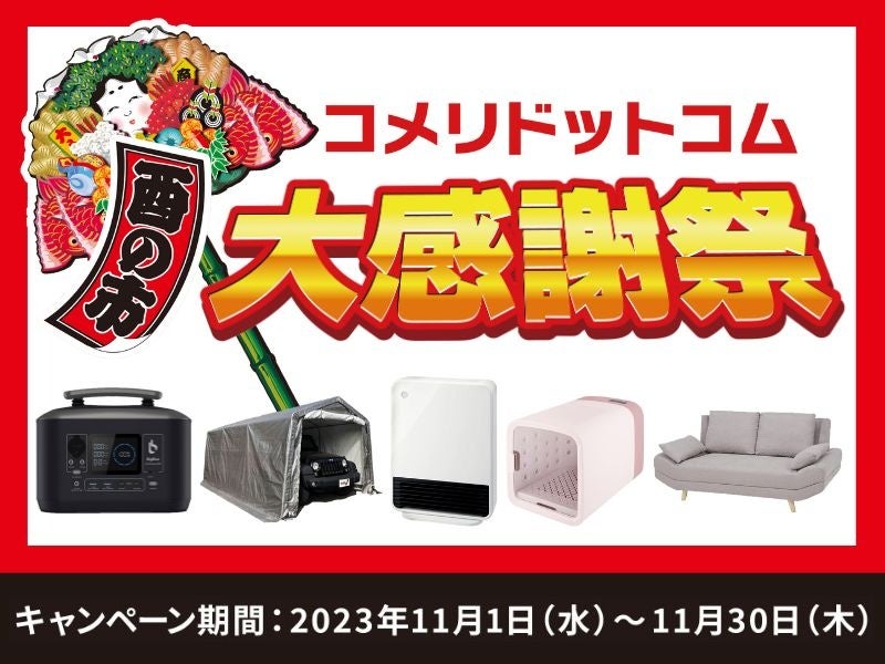 この度、コメリのオンラインショッピングサイト「コメリドットコム」でも、「酉の市 コメリドットコム大感謝祭」を開催します。電動工具、暖房、インテリア、自転車、農業資材など、お買い得価格の商品を400点以上取り揃えました。ぜひご覧ください。※一部数量限定の商品がございます。