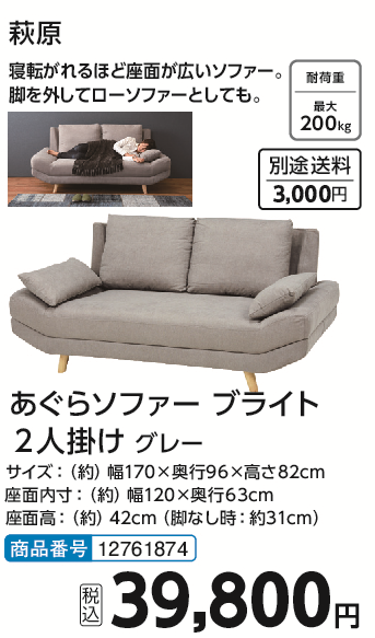 ・サイズ:(約)幅170×奥行96×高さ82㎝