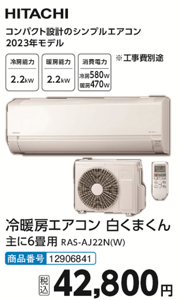 商品名:冷暖房エアコン 白くまくん 6畳用