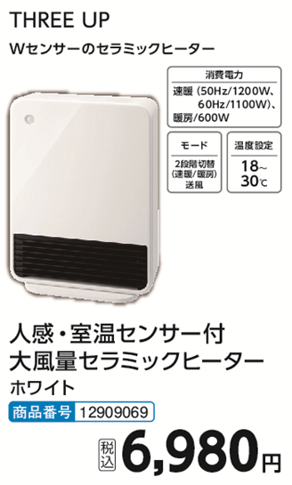 商品名:人感・室温センサー付 大風量セラミックヒーター