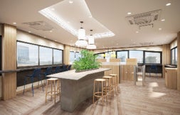 ●2階には店内で購入した商品をお召し上がりいただけるイートインコーナーや落ち着いたグリーンを基調としたワークスペースを設けます。