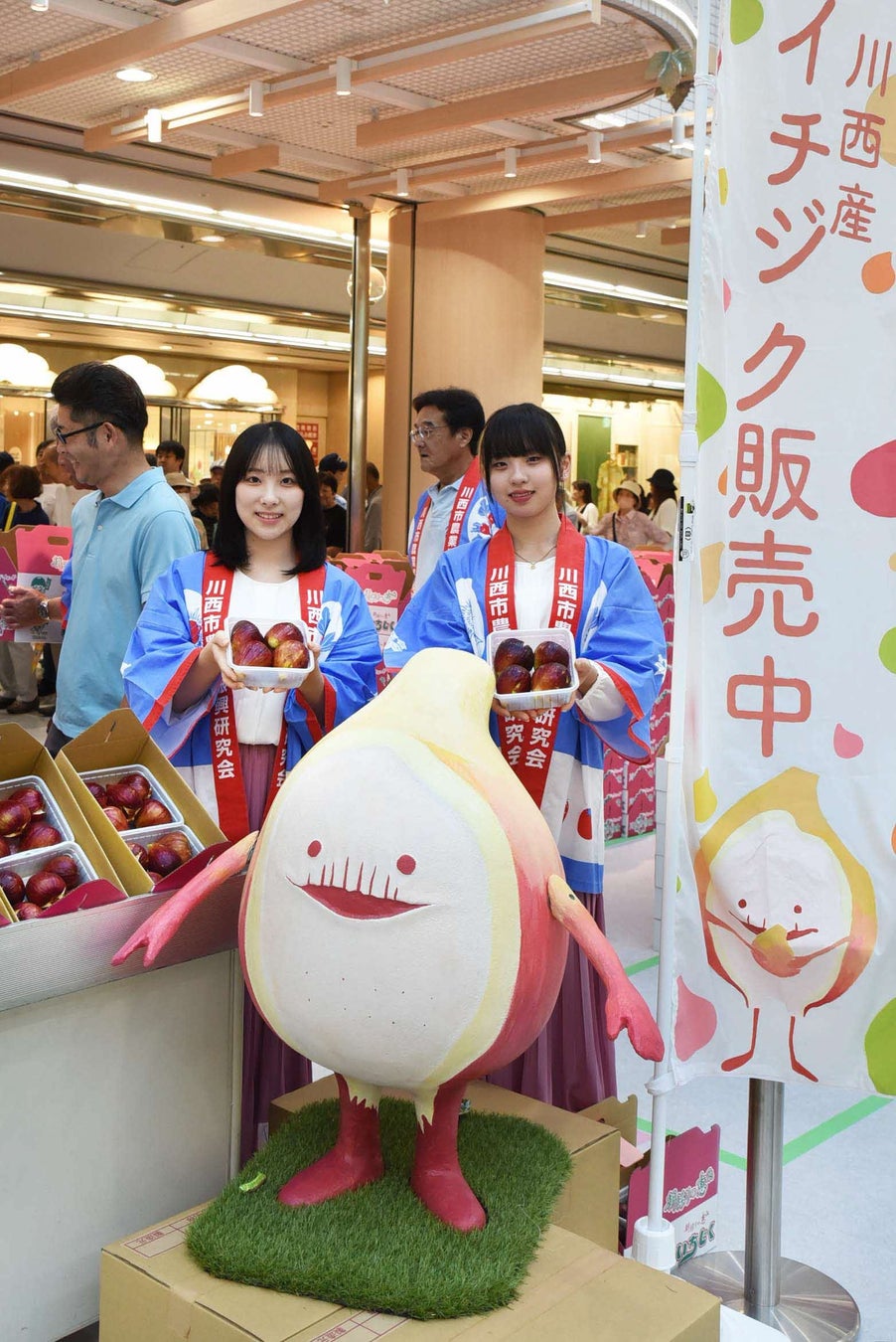 即売会には、売り子として川西スマイルナビゲーターの宮路琴羽さん(みやじ ことは、20歳)と、石本結愛さん(いしもと ゆめ:18歳)の2人が参加し、いちじくの販売に汗を流していました。