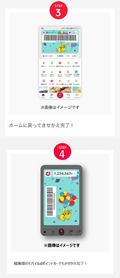 ※4 「dポイントクラブ」アプリ内の「カードきせかえ」機能専用ページ:https://dpoint.docomo.ne.jp/guide/howto_dpoint/app/card_kisekae/index.html