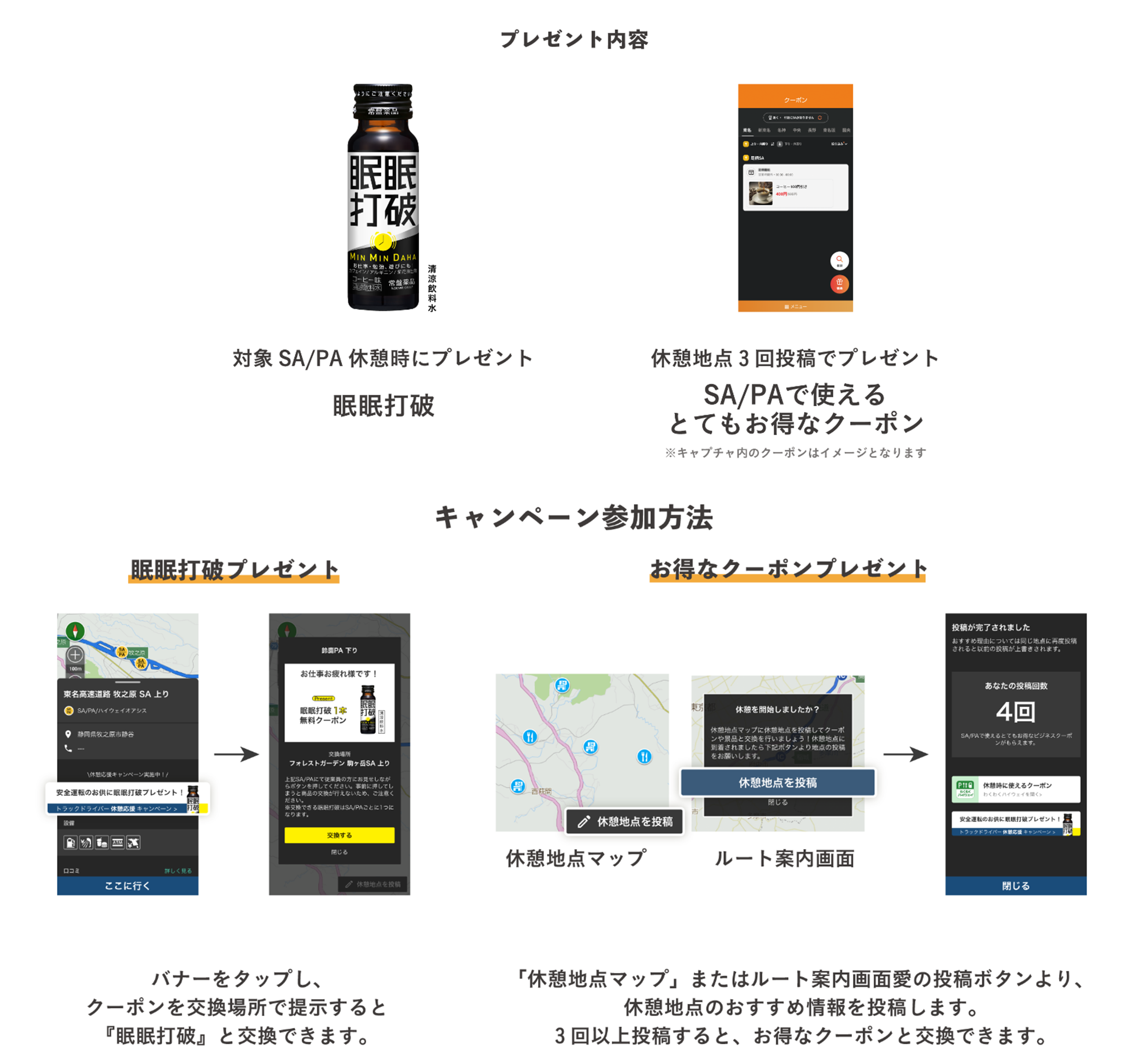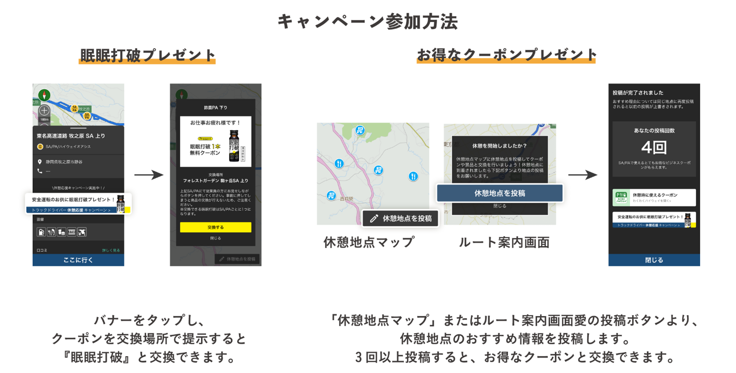 『眠眠打破』×『トラックカーナビ』×サービスエリア「休憩地点マップ」を活用した「トラックドライバー休憩応援キャンペーン」実施
