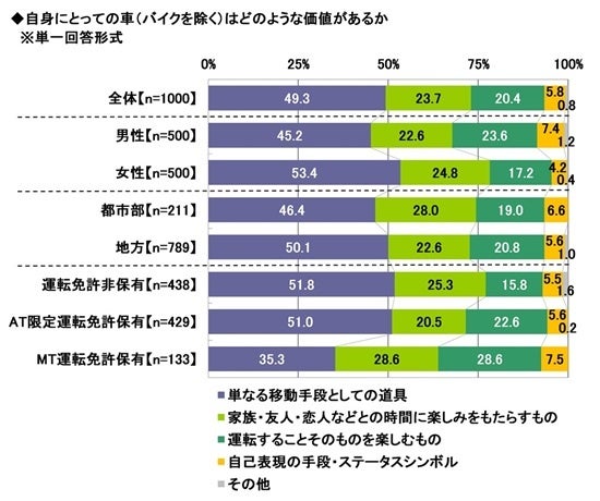 ◆車の価値とは?「単なる移動手段としての道具」49.3%