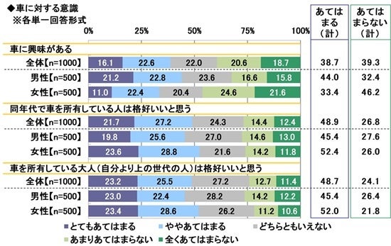 全回答者1,000名に、車に対する意識について、それぞれどの程度あてはまるかを聞きました。