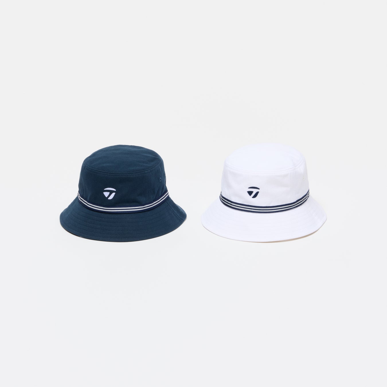 フロント正面に小さくメタルTロゴと、ストライプ柄のグログランテープを施したバケットハット。後ろに内蔵したドローコードでサイズの調整が可能です。